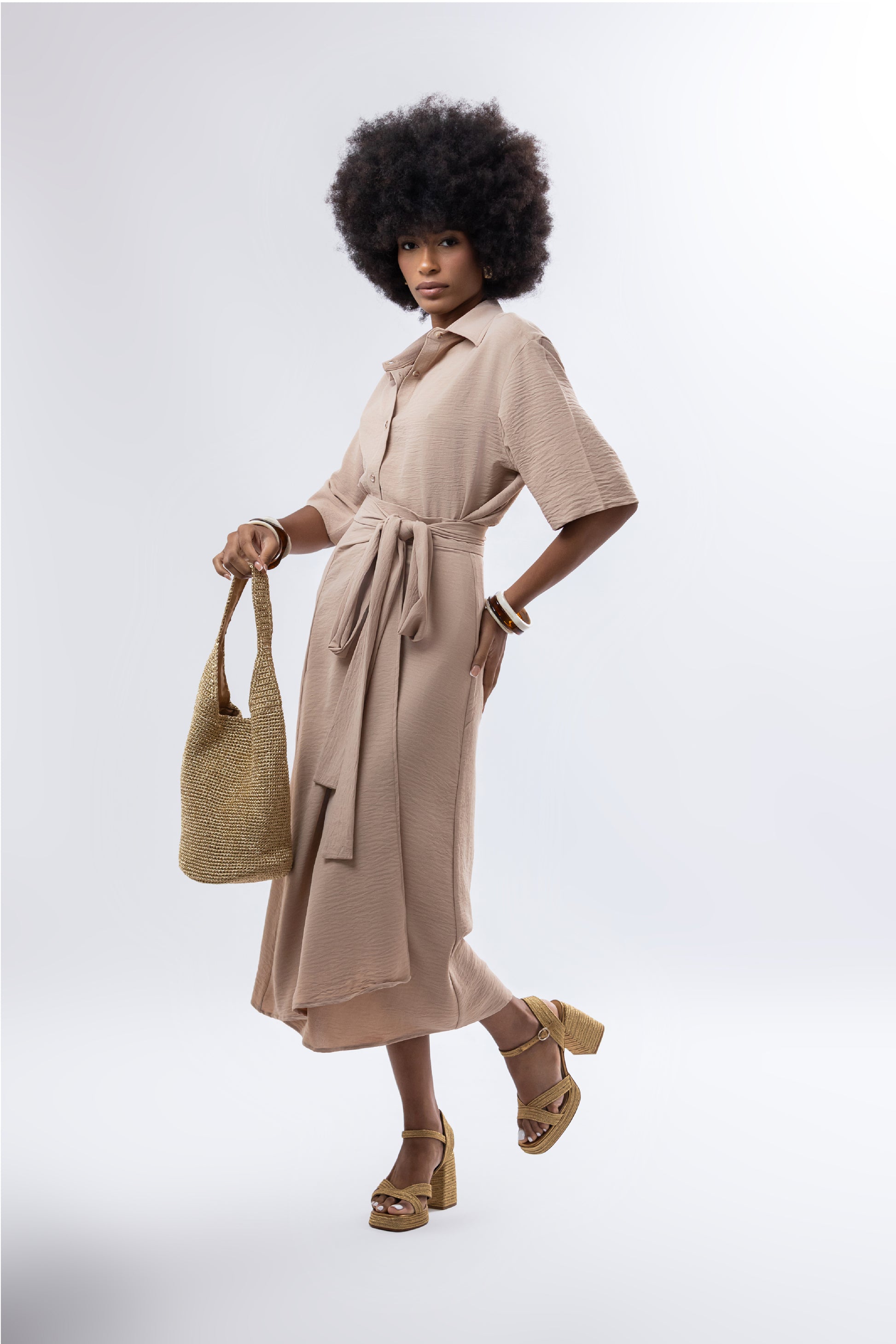 Soft, fluid, and with a subtle textured surface, it offers a refined hand feel and elegant drape. Its best feature, naturally wrinkle resistant, making it ideal for effortless, flowing garments that stay fresh all day.