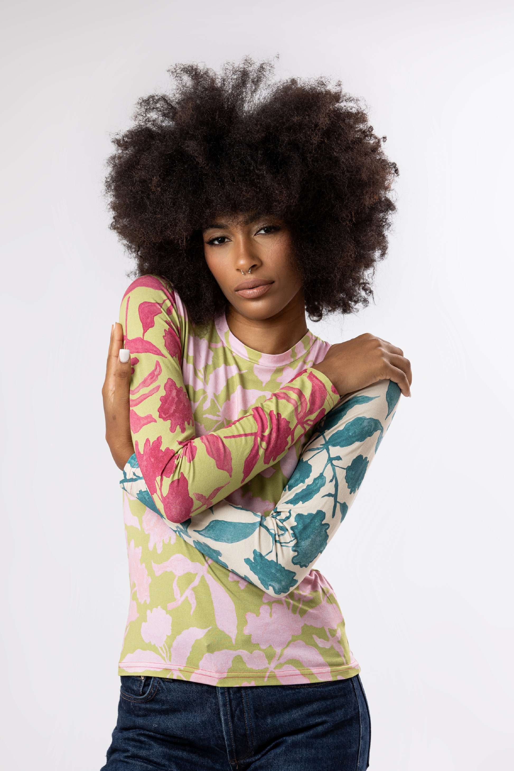 Fitted long sleeve top featuring a crew neckline and our signature print. Crafted in a soft, breathable fabric, it is perfect for layering or wearing on its own. A timeless essential with a unique twist.